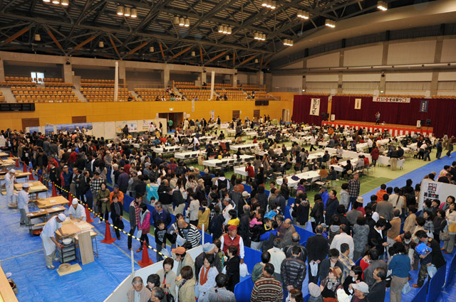 第15回猪苗代新そば祭りは11月12,13の両日、町総合体育館カメリーナで開催されました。この祭りは、町の特産品であるそばをPRしようと毎年開催されているイベントですが、今年は原発事故の影響を考慮し、放射性物質が未検出だったことを確認して実施されました。