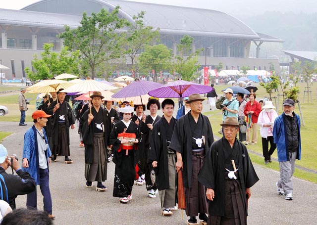 猪苗代町の昭和初期の嫁入りの風景などを再現する「おシンさんの嫁入り」は6月11日、学びいななどをメーン会場に開催されました。ことしの花嫁、花婿役を務めたのは高校生。会場を訪れた観客からは「かわいい」「初々しくていいわね」などと歓声が上がりました。