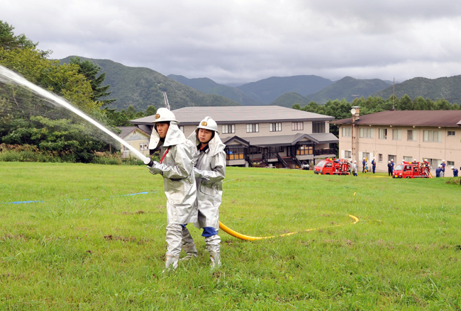 町消防団の非常招集訓練は9月4日、町内グミ沢原のファミリースノーパークばんだい×2周辺で実施され、団員ら173人が訓練に臨みました。