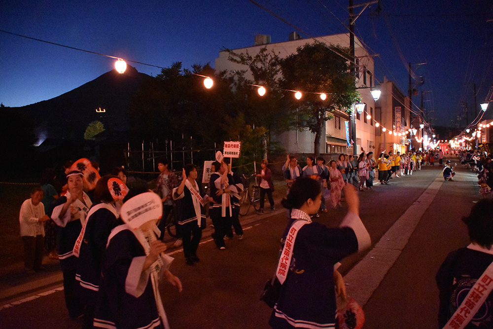 磐梯山噴火殉難者を追悼、供養するとともに五穀豊穣や町民の安寧を祈願する磐梯まつりは7月25、26の両日、旧町役場跡地のおまつり広場をメーン会場に開かれました。まつりにはことしも大勢の町民が参加し、山車とみこしの競演、たいまつ行列、音楽パレードや会津磐梯山総おどりなどを繰り広げ、まつりを盛り上げました。