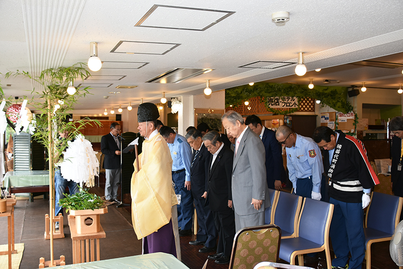 猪苗代湖五浜合同浜開きは7月12日、レイクサイドホテルみなとやで行われ、関係者らが神事を執り行い、湖水浴シーズンの安全を祈願しました。