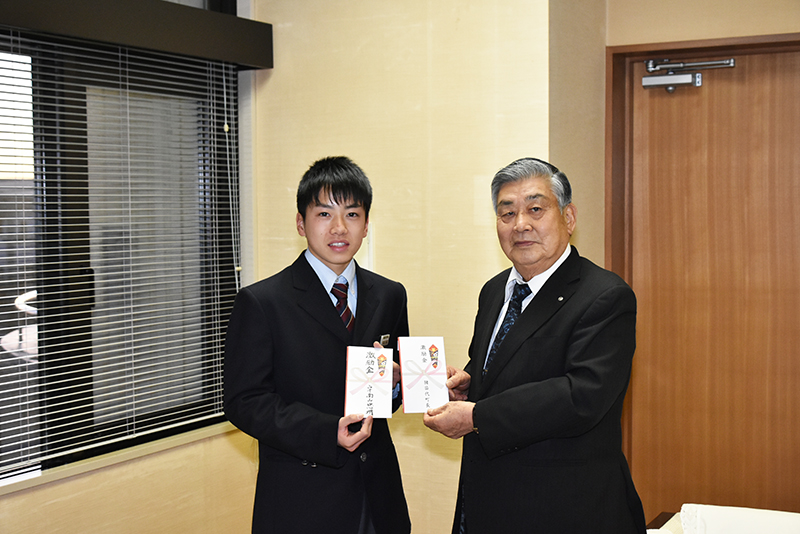 1月19日に広島県で開かれる天皇盃第25回全国都道府県対抗男子駅伝競争大会に出場する猪苗代中学校3年の大橋清陽選手は12月16日、町役場を訪れ、前後公町長に大会に向けた意気込みを語りました。大橋選手は「中学生区間3㌔を8分40秒以内で走り、区間5位以内を目指します。福島県チーム2連覇に貢献したいです」と力強く話しました。 皆さんで大橋選手を応援しましょう!