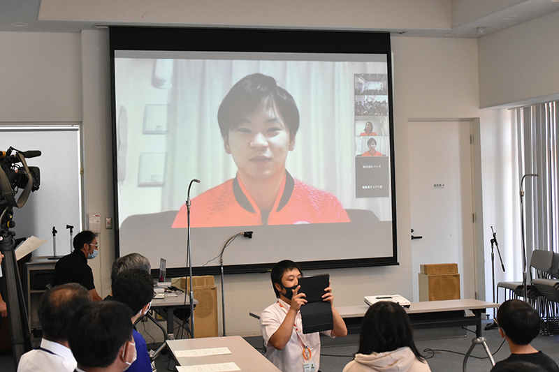 東京2020オリンピック・バドミントン混合ダブルスに出場した本町ゆかりの渡辺勇大選手と東野有紗選手は8月6日、前後公町長らにオンラインで銅メダル獲得を報告しました。 渡辺選手は「猪苗代町の皆さんの支えのおかげです」と感謝を伝え、東野選手は「3年後のパリを目指してこれからも頑張ります」と抱負を話しました。 渡辺選手、東野選手、銅メダル獲得本当におめでとうございます!
