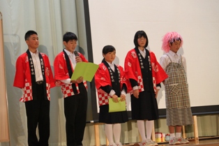 10月29日(土)は文化祭。昨年より大幅に生徒数が減少し準備も大変でしたが、一丸となって仕上げました。一人何役もこなし、なかなか見応えのある、聞き応えのある発表となりました。テーマは「歩」。一歩一歩、しっかりとその足跡を刻みながら未来へと進んでいくことのすばらしさを表現するものとなりました。