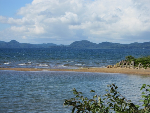 次に、噴火後の緑の再生に成功した遠藤現夢(えんどうげんむ)の墓を見学する予定でしたが、小雨のため安全を第一に考えて、裏磐梯ビジターセンター周辺の毘沙門沼周辺の散策に予定を変更しました。磐梯山噴火後に日本で初めて自然災害による日本赤十字救護活動が行われたことを記録した記念碑、遠藤現夢が植林したと思われる樹木、青く美しい毘沙門沼などを見学しました。