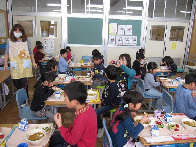 「給食当番は好き~!一番最初にいいにおいをかげるから~。」と、うれしいことを言ってくれています。