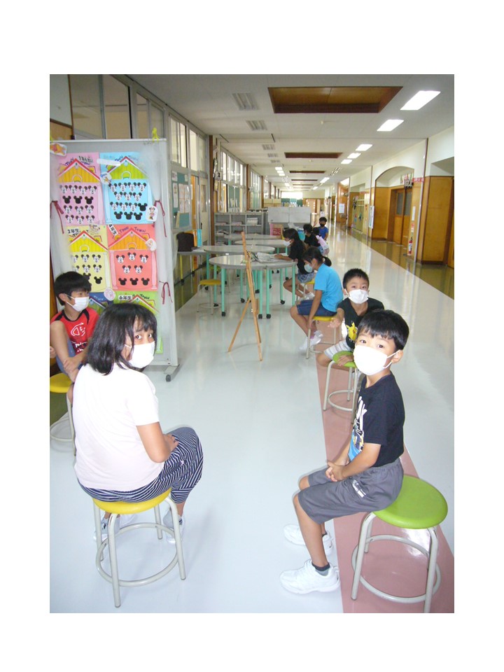 3年生が保健室前にある丸椅子に順序よく並んで座っています。さて、3年生は何をしているのでしょうか。答えは「発育測定の順番を待っている」でした。普段であれば番号順で並んで待っているので、前にいる友だちとくっつき、密になりやすいです。前の友だちが終われば、席を一つ移動します。子ども達はソーシャルディスタンスを取るのが苦手ですので、この方法だと、ソーシャルディスタンスが守られます。さて、発育測定の方はいかがでしょうか?児童の皆さん、身長は伸びましたか?体重は増えましたか?