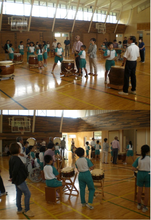 3・4年生の祖父母参観は天神太鼓(総合)でした。3校時目は祖父母の皆様にも参加していただき、一緒に太鼓の練習をしました。3・4年生は、10月に野口音楽祭で太鼓を披露します。その準備も兼ね、今は練習に励んでいます。太鼓を打つ醍醐味をおじいさんもおばあさんも楽しんでいただきました。そしてその後は、天神太鼓の発表をしました。音楽祭までまだ日はありますが、3年生もだいぶ上手になり、4年生との掛け合いがとても良くなってきました。
