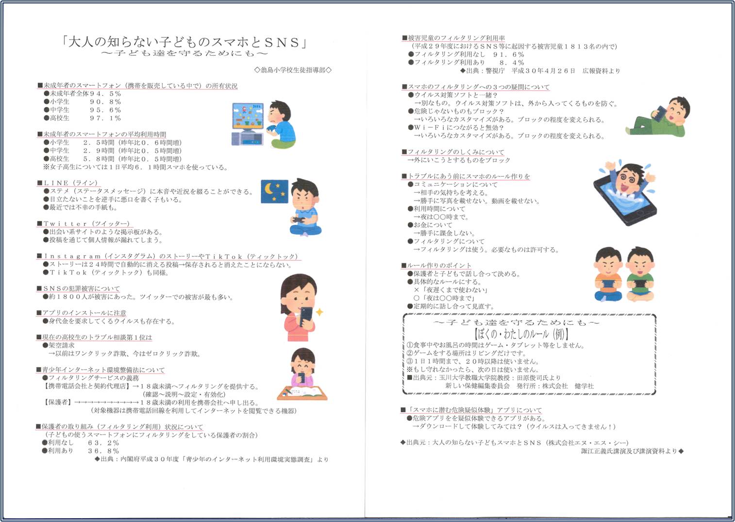 特に今回は、生徒指導主事から「大人の知らない子どものスマホとSNS」と題して、子どもたちを守るために知っておきたい事実などについての話をしました。