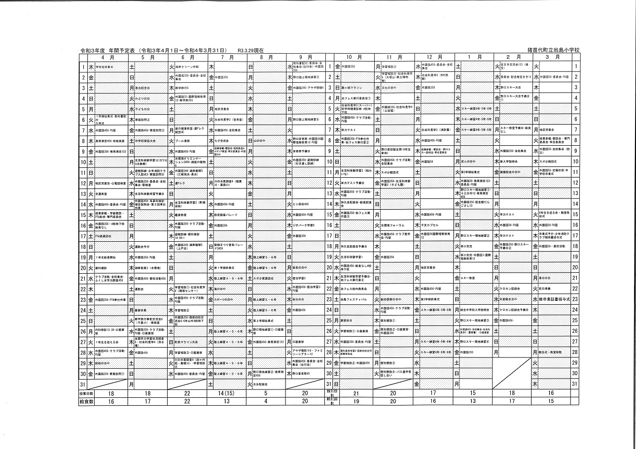 以前、令和3年度の年間指導計画(3月5日に掲載)をPDFファイルで添付しましたところ、スマホで見ることができないというご意見をいただきました。