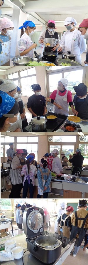 今日は5年生が町の農林課主催の米消費拡大事業ということで調理実習を行いました。