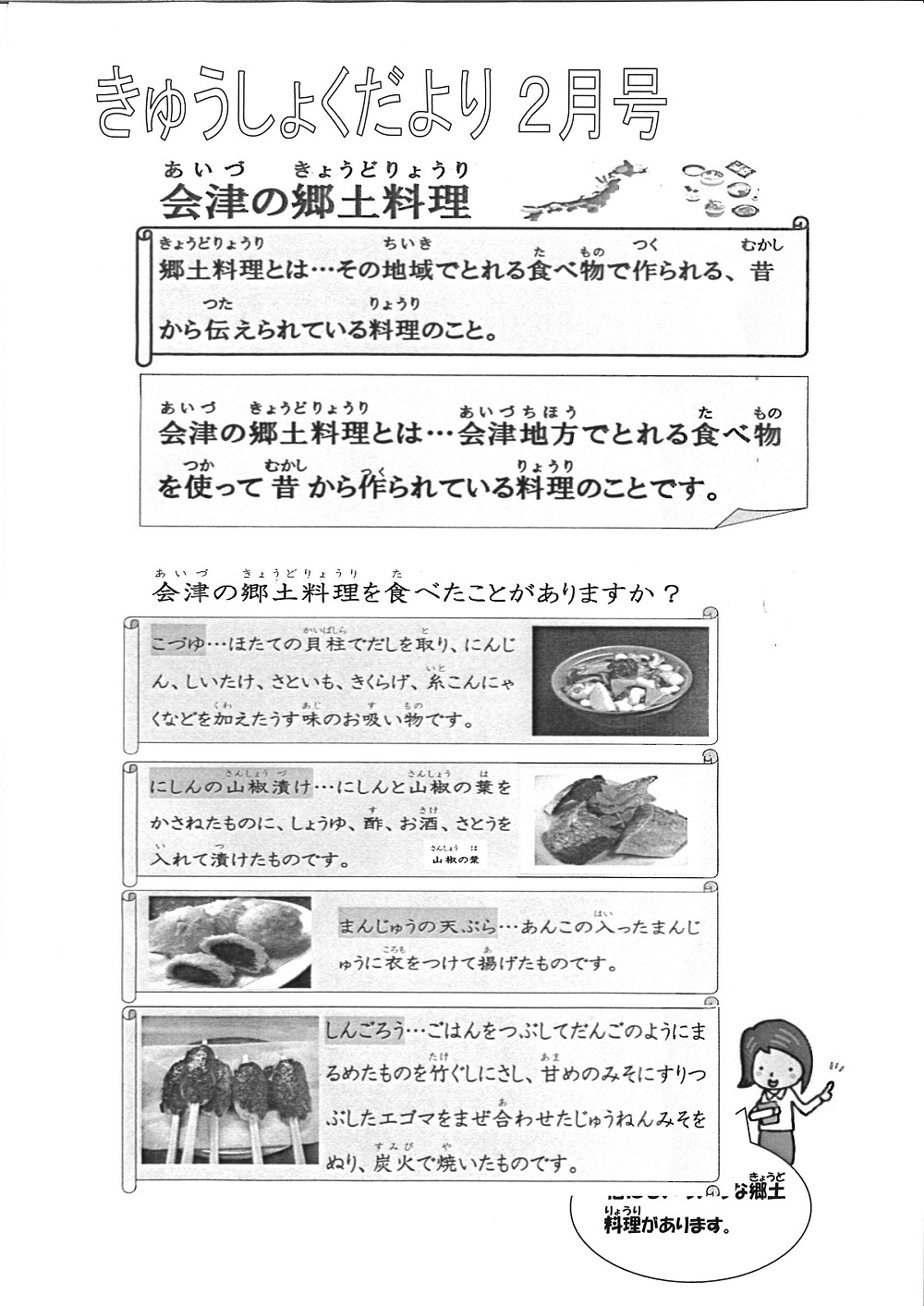 今回の給食だよりには「会津の郷土料理」について紹介されています。