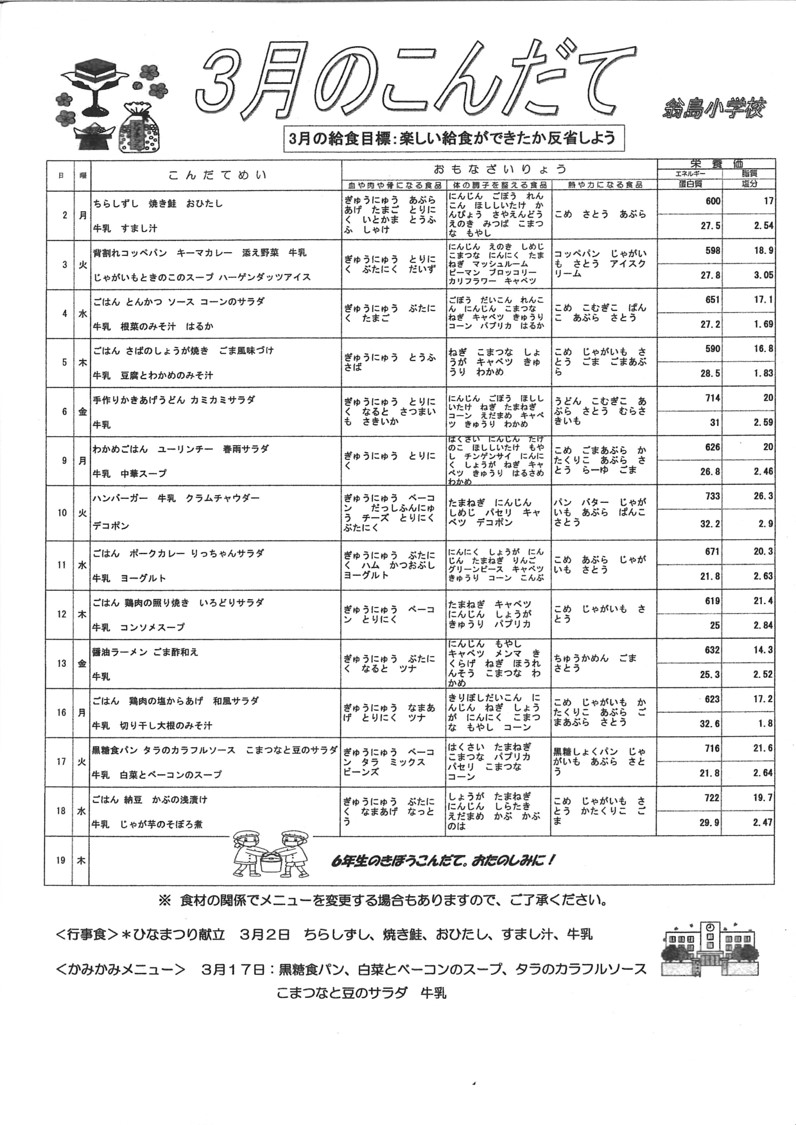 ひなまつりメニューやカミカミメニューも予定されていますので、お楽しみに。