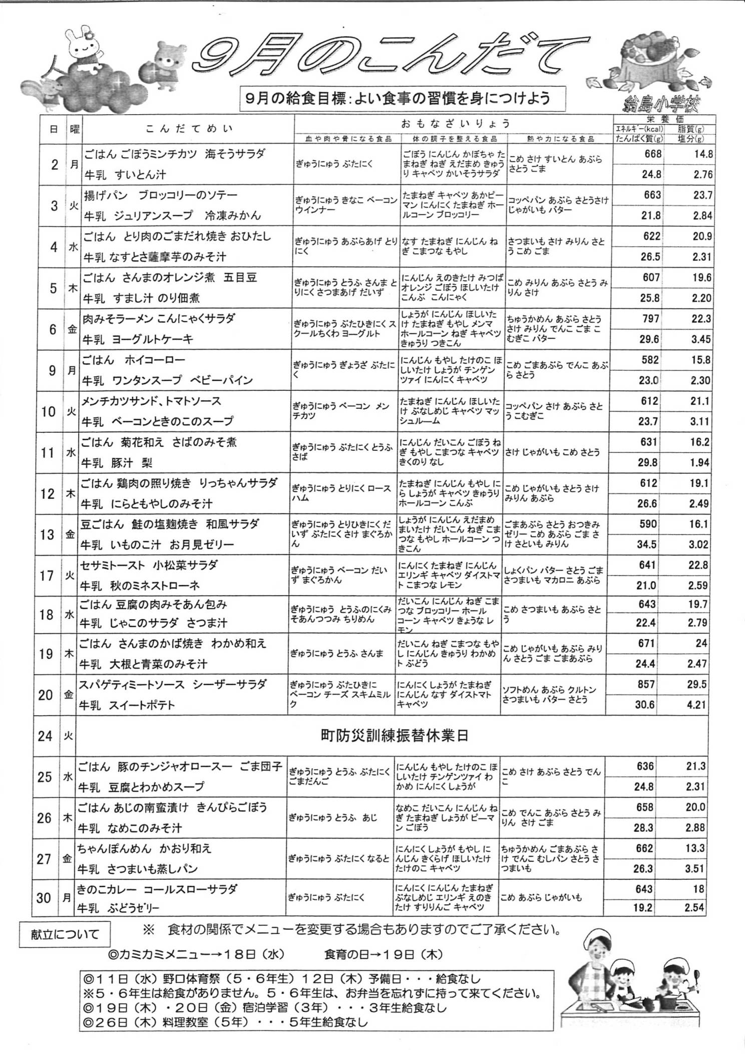 9月の給食だよりができましたので、一足早くお知らせいたします。