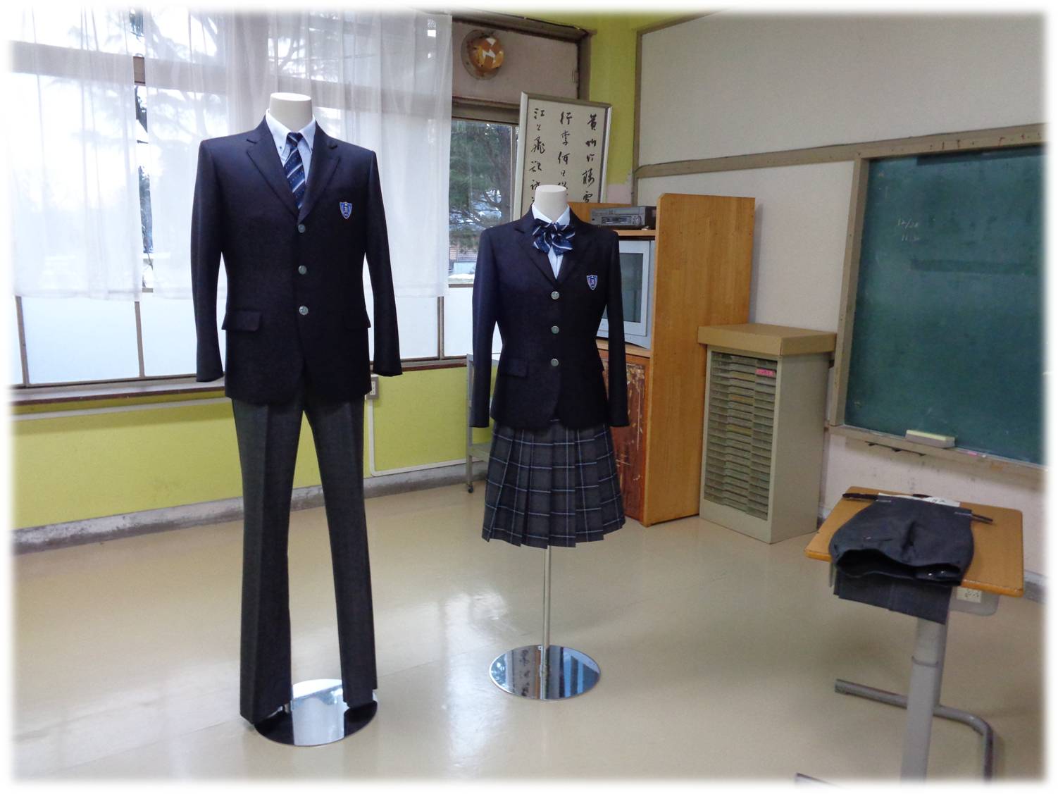 本日10日より、本校会議室において統合中学校の制服が展示されています。