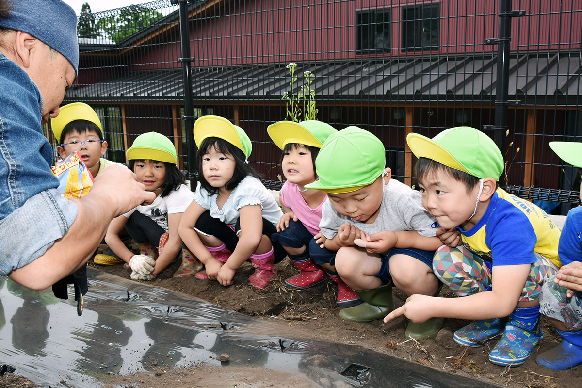 さくらこども園では6月9日、JAあいづよつば農業青年連盟猪苗代支部のメンバーと一緒に野菜の苗や種を植えました。この日は、トマトやスイカ、サツマイモなどを畑に植えました。おいしい野菜が収穫できるといいですね。