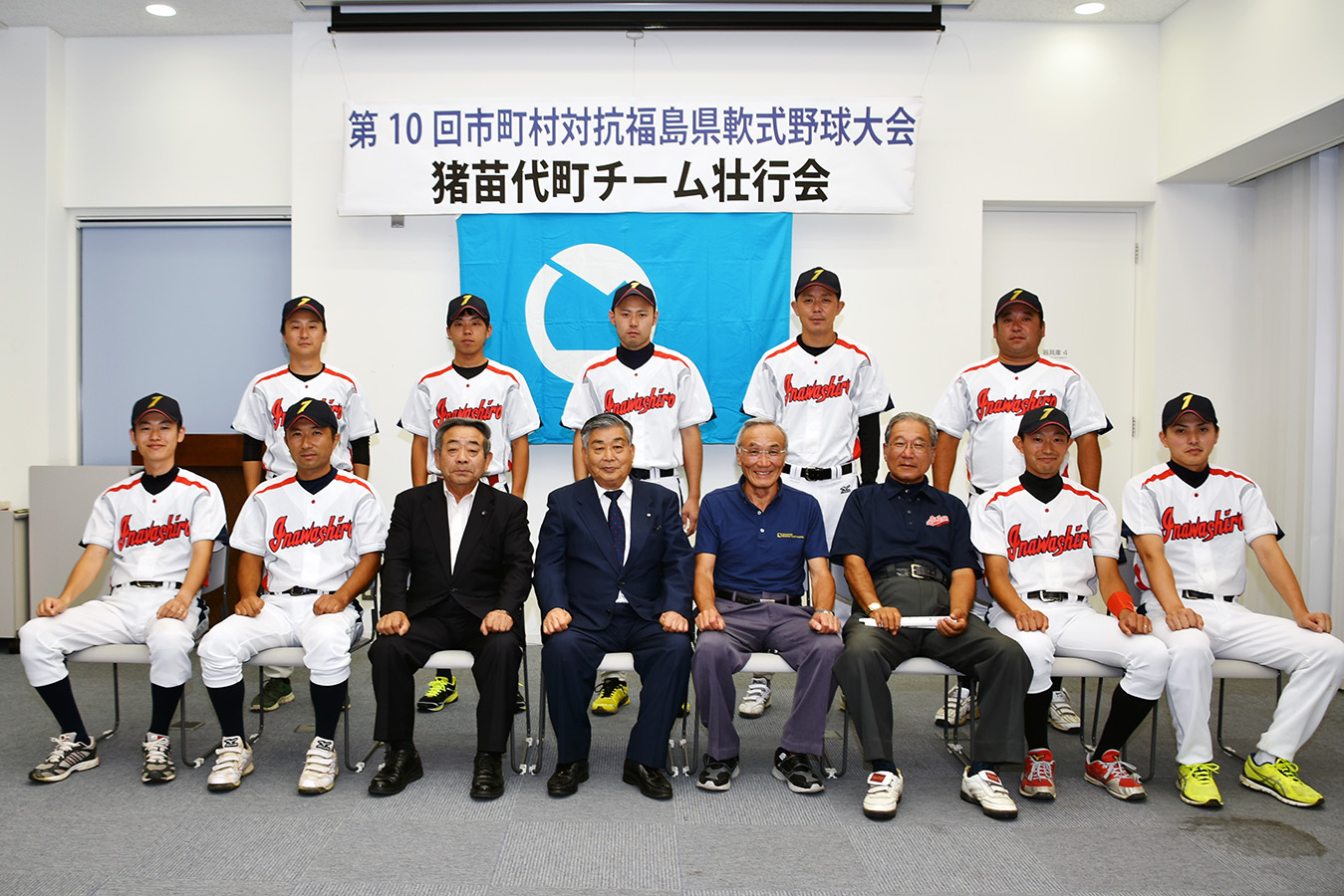 第10回市町村対抗福島県軟式野球大会に出場する、猪苗代町代表チームの壮行会は8月29日、学びいなで開かれました。