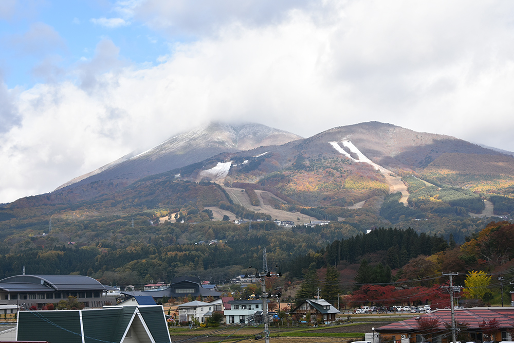 磐梯山がうっすらと雪化粧しました。