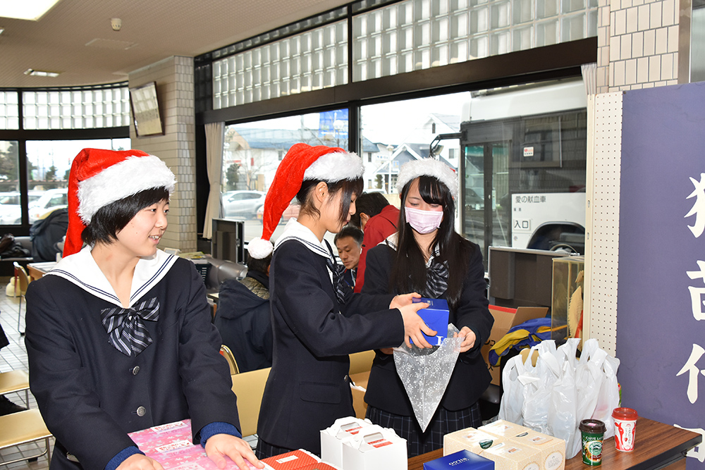 猪苗代高校JRC委員会のメンバーらは12月22日、「全国学生クリスマスキャンペーン」の一環として、町役場で献血ボランティア活動を行いました。 生徒たちは、役場の来庁者に献血協力の呼びかけなどを行いました。