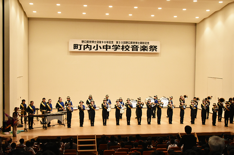 第35回野口英世博士顕彰記念町内小中学校音楽祭は10月2日、学びいなで開かれ、町内の小・中学生が合奏や合唱など日ごろの練習の成果を披露しました。