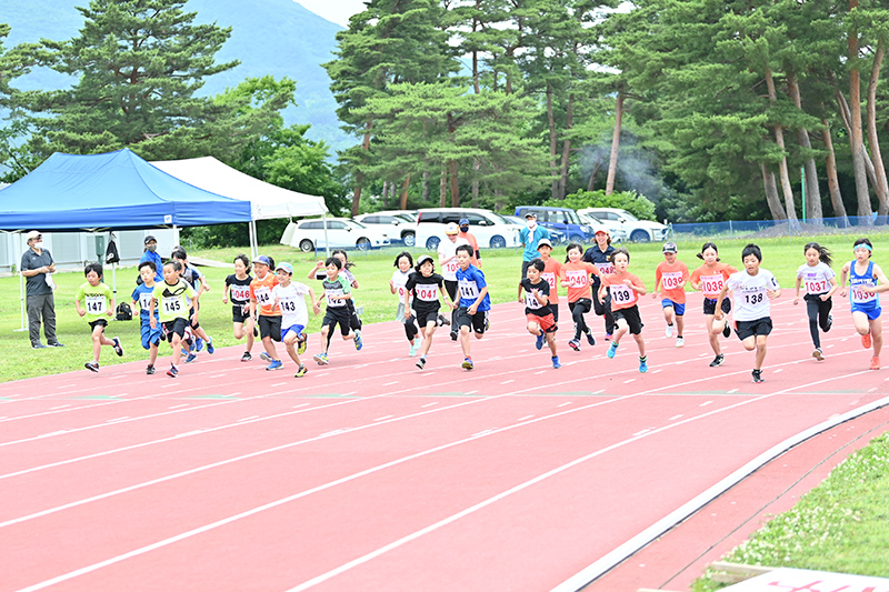 町民健康マラソン大会は6月27日、町運動公園で開かれました。参加者した選手は、日ごろの練習の成果を披露し、爽やかな汗を流しました。