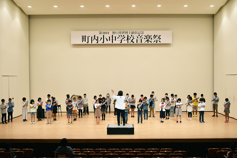 野口英世博士顕彰記念町内小中学校音楽祭は9月30日、学びいなで開かれ、町内の小中学生が合奏や合唱を披露しました。