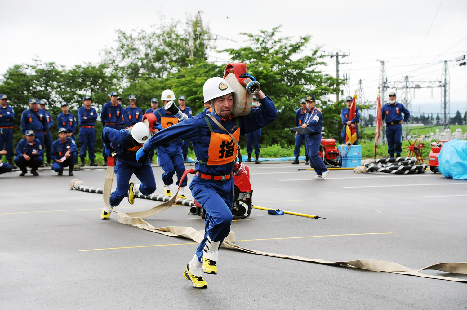 町消防操法大会は7月3日、水防センター西側駐車場で開かれ、出場した選手は日ごろの訓練の成果を披露しました。審査の結果、ポンプ車操法の部では第5分団が、小型ポンプ操法の部では第6分団が優勝しました。優勝した両チームは、8月7日に同会場で開かれる北会津大会に町の代表として出場します。消防団の「長い夏」がまだまだ続きます。皆さんで応援しましょう!(写真は小型ポンプ操法の部で優勝した第6分団)