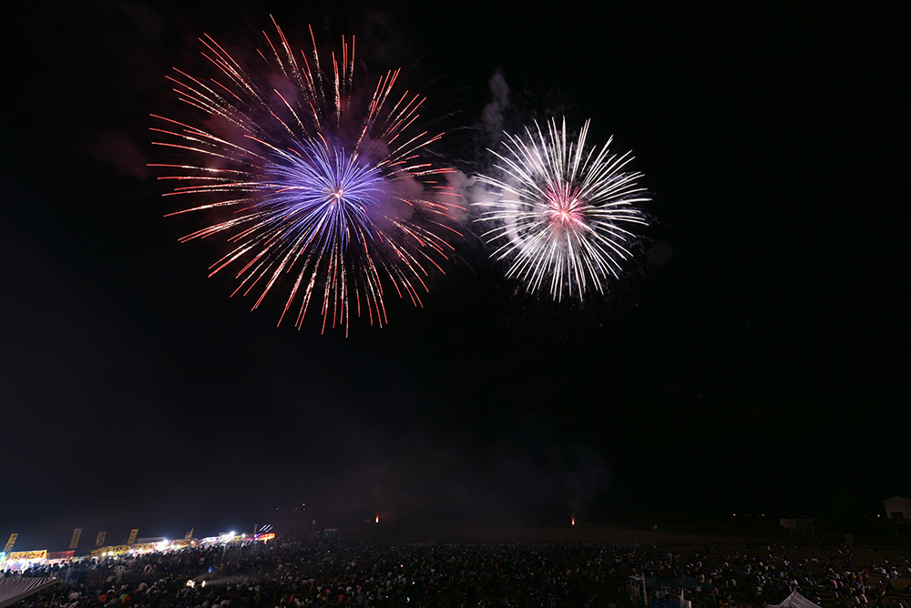 いなわしろ花火大会は8月13日、町運動公園で行われました。音楽に合わせて約3千発の花火が打ち上げられ、猪苗代の夜空を鮮やかに彩りました。