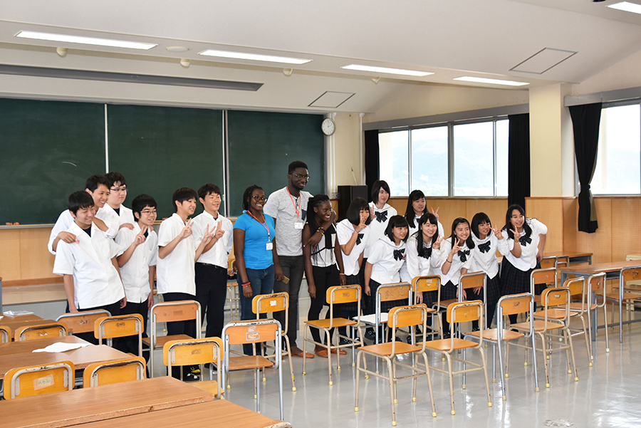 ガーナの高校生21人は8月31日、猪苗代高校を訪れ、生徒間交流を行いました。生徒たちは、日本の遊び体験やクイズ大会などを通じてお互いの交流を深めました。