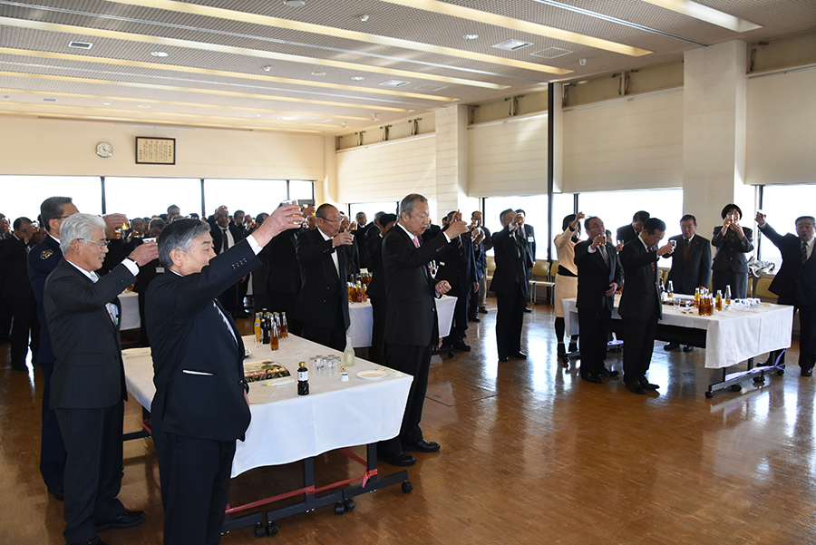 猪苗代町新年あいさつ交歓会は1月4日、町役場で開かれ、町内の各団体などから約120人が出席し、新年を祝うとともに、年頭にあたりさらなる町勢伸展と発展を誓いました。