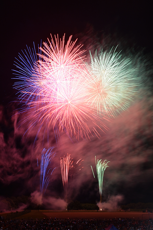 いなわしろ花火大会は8月13日、町運動公園で開かれ、約3000発の花火が打ち上げられました。