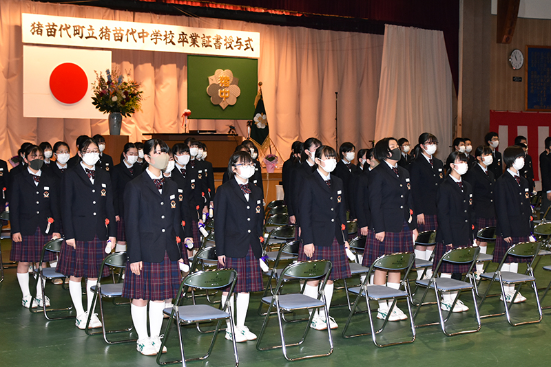 町内3中学校の卒業証書授与式は3月12日、各中学校で行われました。(写真は猪苗代中学校)