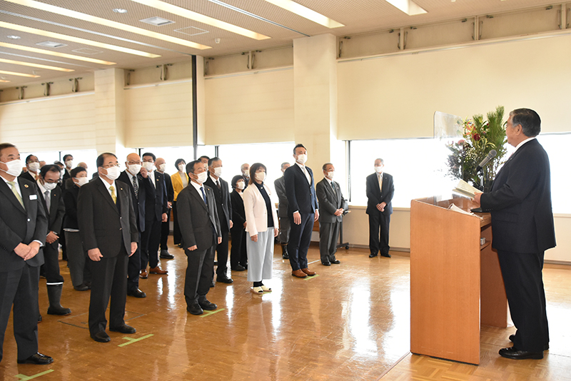 前後町長は「日本の代表として、国民の皆さんに感動を与えられるような滑りを期待しています」と激励。月井総支配人は、「町民の皆さんに応援していただきうれしいです。現地入りしている本人にも伝えます。メダル獲得を狙う星野選手の励みになります」と話しました。