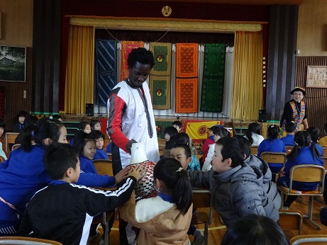 11月29日、本校でアフリカ音楽を鑑賞しました。セネガル人のアブドゥ・バイファルさんと日本人のトニー山本さんが来られました。セネガルは、野口英世博士が活躍したガーナの西にあり、音楽やスポーツが盛んで自然の美しい観光地です。首都はダカールで、「パリ・ダカールラリー」で有名な日本にも馴染みの国です。